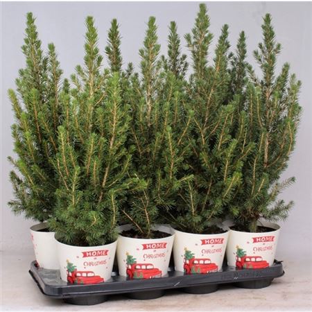 Ель канадская Коника (Picea glauca Conica) - карликовая конусовидная форма. Высота 3-4 м, диаметр кроны 2 м. Годовой прирост в высоту 6-10 см, в ширину 3-5 см. В 35 лет высота 3,6 м у некоторых экземпляров. Самое старое растение в возрасте 60 лет имеет высоту 4 м. Крона густая. Хвоя мягкая, светло-зеленая. Используется при одиночных посадках, в группах, альпинариях. Ель канадская Коника декоративна благодаря правильной, конической форме кроны.