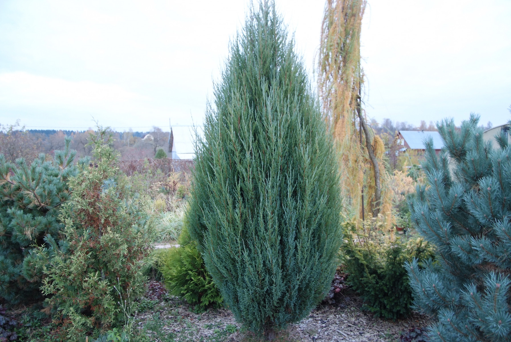 Уже в 10-летнем возрасте кустарник превышает отметку в 3 м. Благодаря вертикальным, прямым и густым побегам он формирует стройную, узкую крону. Ветви покрыты чешуйчатой, мелкой хвоей сизо-зеленого оттенка. Крупномер скальный Skyrocket приживается на любых почвах, светолюбив, поэтому предпочитает солнечные участки. Сорт зимостойкий, засухоустойчивый, не боится сильных ветров и сухого, загазованного воздуха. Саженцы подходят как для одиночных, так и для групповых посадок.