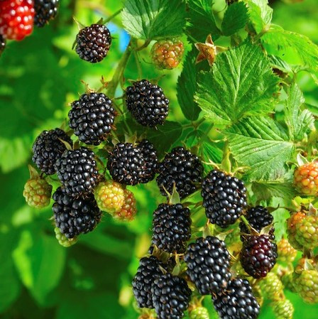 Саженцы ежевики Prime Jan – саженцы ремонтантной ежевики, которые хорошо переносят холодные зимы. Созревание ягод наступает в августе-сентябре. Ягоды крупные по размерам, сладковатые, с запахом и послевкусием яблок, форма плодов – удлиненная. Ягоды плотные, не мнутся при транспортировке. Сорт урожайный настолько, что под побеги приходится ставить опоры, чтобы ягоды не оказались на земле. Сорт ценится за оригинальный вкус и ранние урожаи