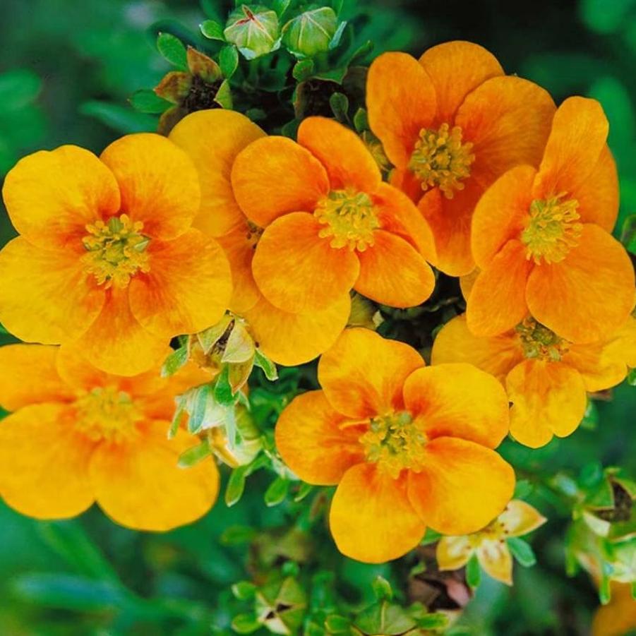 Лапчатка Mango Tango (Uman) - очень густой, декоративно-цветущий карликовый сорт лапчатки, вырастающий 6о см. Куст компактный, аккуратный. Цветки крупные, двуцветные оранжево-красные с яркой желтой серединой. В прохладную погоду обычно цветки более красные. Листья светло-зеленые, сложные, характерные для вида. Цветки с необычной двойной окраской венчика.