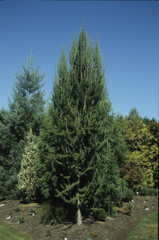 Лиственница японская Jakobsen’s Pyramid - среднерослое дерево с узкопирамидальной кроной. Ветви короткие, отходят от ствола под острым углом. Хвоя при распускании светло-зелёная, затем становится голубовато-зелёной, осенью окрашивается в ярко-жёлтый или бронзово-жёлтый цвет. Высота растения - 4-5 м. Крона ускопирамидальная. Сорт предпочитает солнце или легкую полутень.