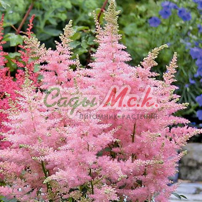 Саженцы астильбы Vеrоniса Klоsе – это компактные среднерослые кусты с темно-зелеными листьями и красными стеблями, на которых в июле-августе появляются густые метельчатые соцветия темных лилово-розовых тонов. Этот сорт замечательно смотрится в композициях с другими многолетниками, а также в множественных посадках. Саженцы данного сорта предпочитают полутень, а также зоны разреженной тени. Главное – не допускать пересыхания почвы.