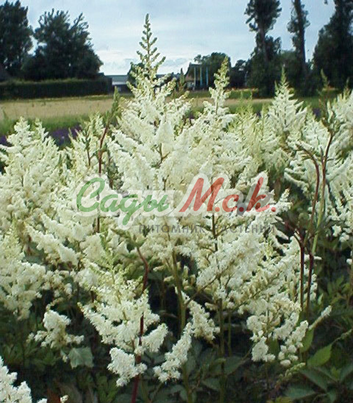 Саженцы астильбы Visiоns in Whitе приведут в восторг ценителей ажурной декоративной красоты: когда видишь роскошные молочно-белые соцветия-метелки и насладитесь их нежным ароматом, то просто нельзя не влюбиться в этот сорт. Темная зелень листвы имеет притягательный бронзовый отлив, придающий благородства внешнему вида этого растения. Саженцы могут хорошо расти и на солнце, но самое оптимальное место для развития – это полутень.