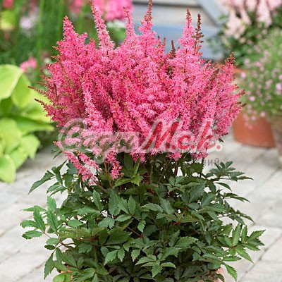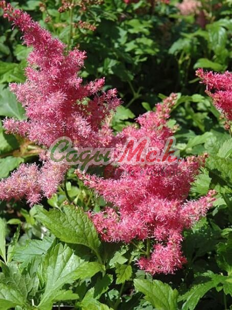 Саженцы астильбы Strаussеnfеdеr – шикарные декоративные кусты с элегантными поникающими кисточками-соцветиями, эффектно оттеняющими темную блестящую зелень листвы. Нежные розово-коралловые цвета позволяют насладиться своей красотой в июле-августе. Цветение очень долгое и невероятно пышное. Впрочем, роскошный куст этого растения сохраняет декоративность весь сезон. Саженцы данного сорта следует размещать в полутени.