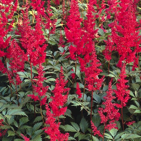 Саженцы астильбы Vеsuvius – это выбор садоводов, которые знают толк в красивоцветущих ароматных растениях, способных обогатить садовую гамму яркими и сочными красками своих соцветий. Ветвистые крепкие кусты с небольшими аккуратными темно-зелеными листьями являются декоративными на протяжении всего сезона, но настоящую красоту «Везувия» можно оценить во время цветения, когда распускаются пышные темно-красные соцветия. Особенно эффектно эта астильба выглядит в множественных посадках.