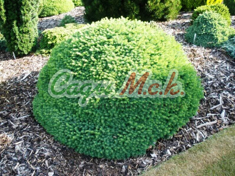 Карликовая конусовидная форма ели. Достигает высоты 2 м, диаметра кроны 1 м. Хвоя игольчатая, радиальная, редко расположенная, 10 мм длиной, очень мягкая, светло-зеленая. Растет на свежих или влажных, умеренно богатых питательными веществами почвах, от кислых до щелочных. Светолюбива, выносит полутень. Особенности: Ель канадская Коника Спиди декоративна благодаря правильной, конической форме кроны. Плохо переносит уплотнение и переувлажнение почвы. Морозостойка. Одно из лучших и популярнейших растений для каменистой горки, используется для выращивания в контейнерах на крышах и террасах, для одиночных и групповых посадок, альпинариях. Высота саженца 30-40 см.