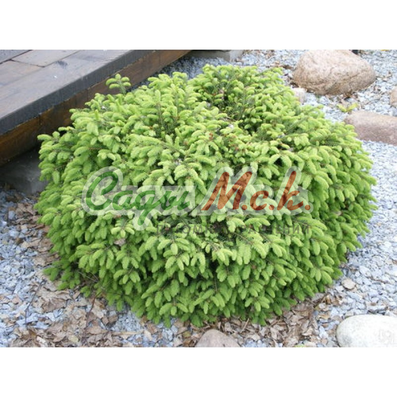 Ель шаровидной формы. Крона плотная компактная, к 10-ти годам диаметр кроны около 30 см. Годовой прирост 2-3 см. В штамбовой форме высота зависит от места прививки. Хвоя серебристо-голубая. Место солнечное. Почва умеренно влажная, дренированная. Зона 3 (до -34ºС). Отличный сорт для небольших приусадебных участков, альпинариев, для выращивания в контейнерах.