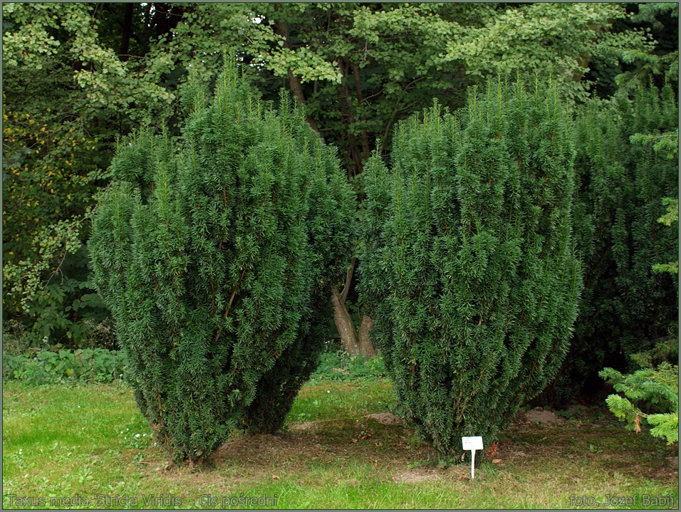 Тис средний Стрикта Виридис (Stricta Viridis) - невысокий кустарник аккуратной, вначале немного кеглевидной, затем строго узко-колоновидной формы. Высота до 2м. Побеги длинные поднимающиеся, вертикальные. Хвоя плоская, игольчатая, мягкая, темно-зеленая блестящая, длиной 2,5-3 см. Ежегодный прирост: в высоту 15 см, в ширину 10 см. Долговечность: более 1000 лет. Крона: густая. Хвоя Предпочитает плодородные суглинистые, хорошо дренированные почвы, не выносит застоя воды и кислых почв. Отношение к свету: солнце/полутень. Растет довольно быстро. Рекомендуется для групповых и одиночных посадок на каменистых участках, альпийских горках. Морозостоек в средней полосе России. Засухоустойчив.