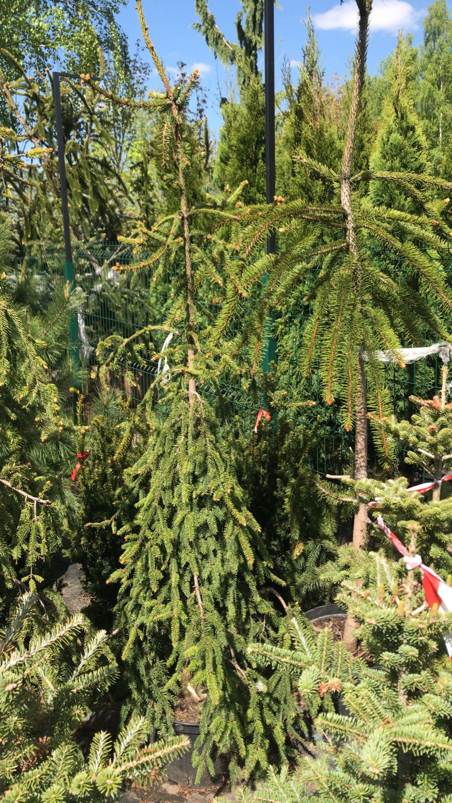 В высоту деревце достигает 8 м, крона узкая, развивается неравномерно, обычно ее диаметр не превышает 3 м. Ежегодно ель увеличивается на 10 см в высоту и 5 см в ширину. Главная особенность крупномера обыкновенная Inversa – ниспадающие, обвисшие ветки и заваливающаяся верхушка. Хвоя блестящая, толстая, темно-зеленого оттенка. Саженцы хорошо переносят сильные морозы, не терпят засухи, но и к переувлажнению относятся негативно. Ель светолюбива, но приживается и в полутени.